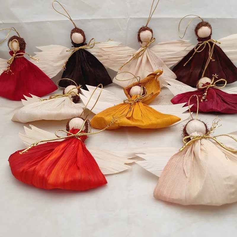 Desde Pichidegua, la artesana Sandra Arriaza lleva más de 25 años dedicada a transformar la hoja seca del maíz en piezas únicas que combinan belleza y sustentabilidad. Su oficio consiste en recolectar las hojas del choclo directamente del campo, cuando ya están secas en la mata, para luego crear posavasos, bolsos, individuales y flores decorativas teñidas en distintos colores.